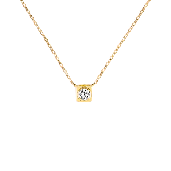 A graphic necklace which hosts a diamond.