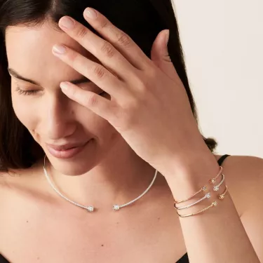 Avec ce bracelet pavé, dinh van réinvente la quadrature du cercle et sublime le diamant en jouant avec les codes géométriques qui lui sont chers : les ronds et les carrés.
