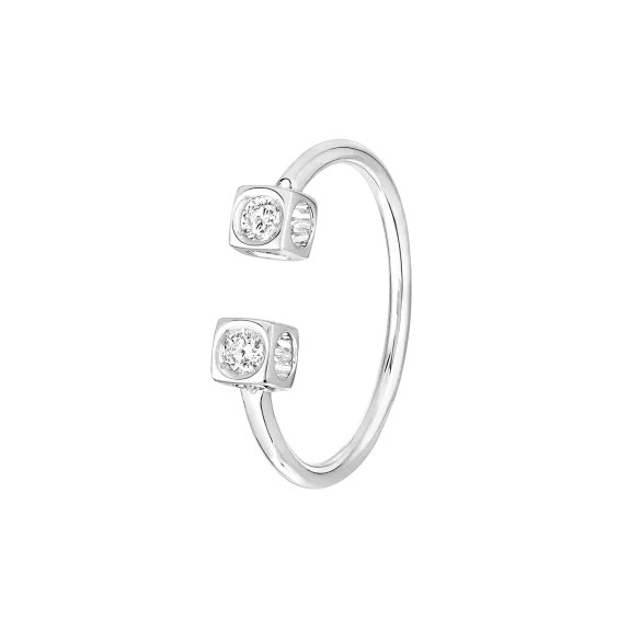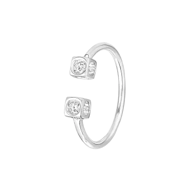 Une bague au face à face précieux. A porter selon les goûts, ce bijou offre un libre choix entre le porté classique et l’accumulation. Les diamants sont mis à l’honneur sur un corps fin et discret.