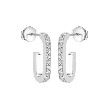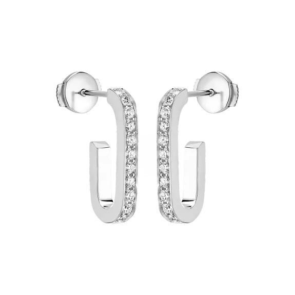 Boucles d'oreilles Maillon L en or blanc 18 carats et diamants.