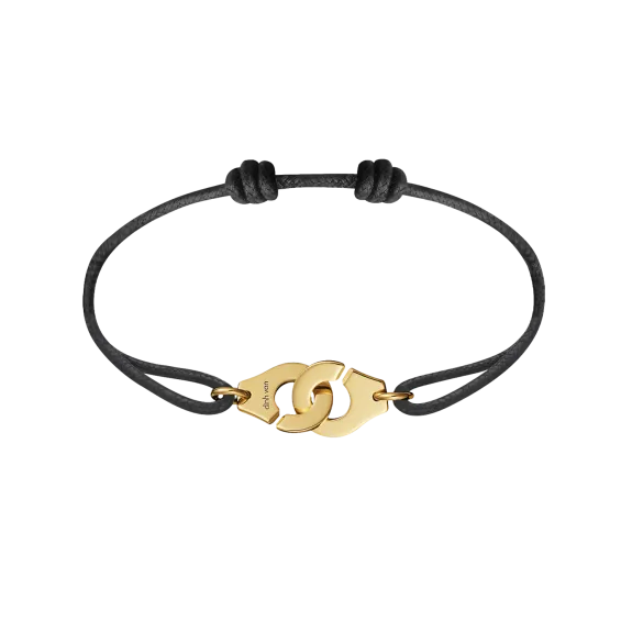 Le motif icône dinh van s'agrémente sur un bracelet sur cordon, qui s'ajuste à toutes les envies.