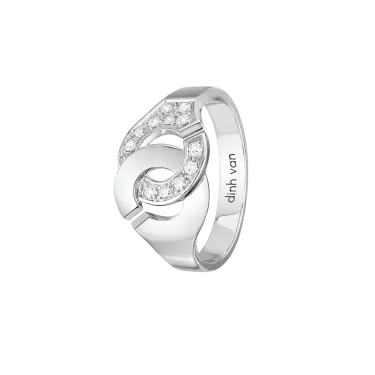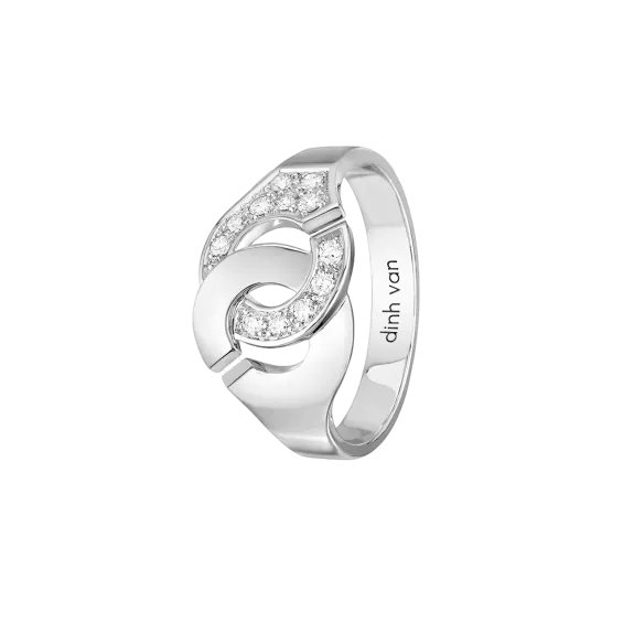 Bague Menottes dinh van R10 en or blanc 18 carats demie-pavée diamants.