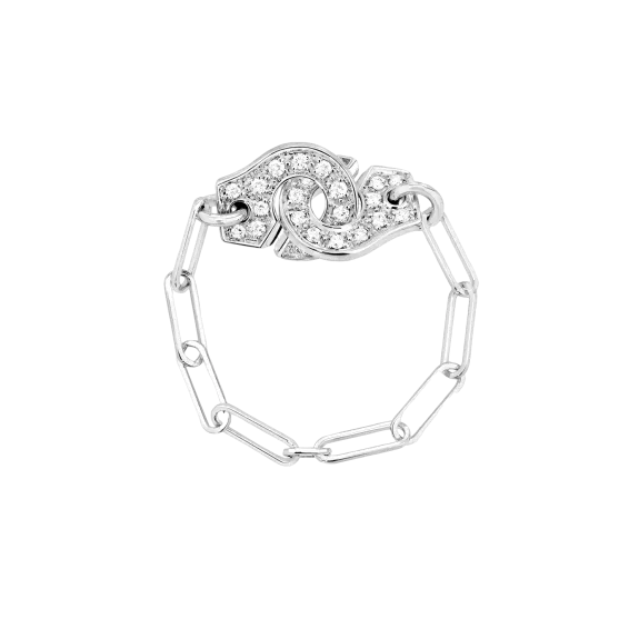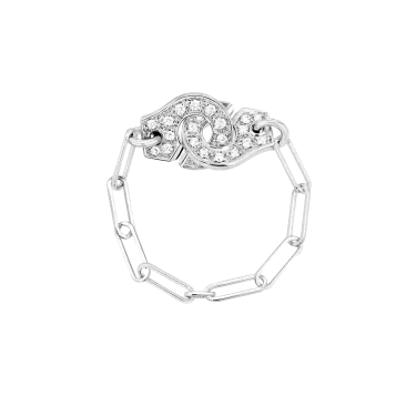 Un bijou à l'esprit rebelle. Cette bague chaîne Menottes dinh van pavée diamants symbolise l’union et l'attachement entre deux personnes.