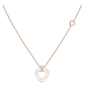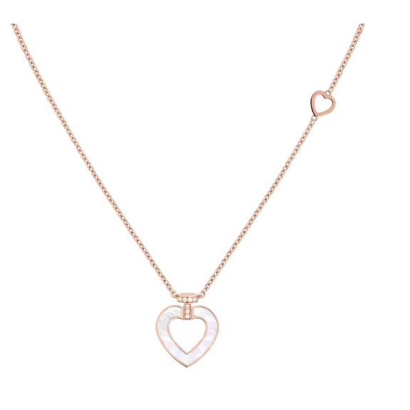 Collier Pretty Woman petit modèle en or rose, semi-pavé de diamants et orné de nacre blanche et de malachite.
