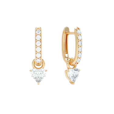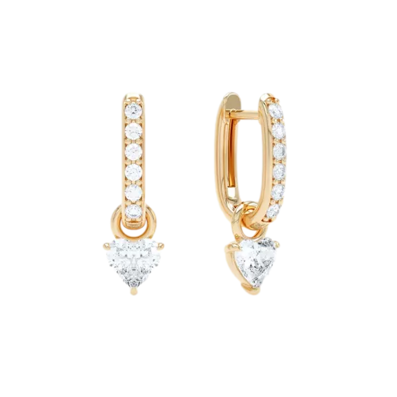 Les gouttes en forme de cœur sont amovibles, ce qui vous permet de personnaliser votre style. Les boucles d'oreilles se ferment à l'aide d'un fermoir à charnière sécurisé. »