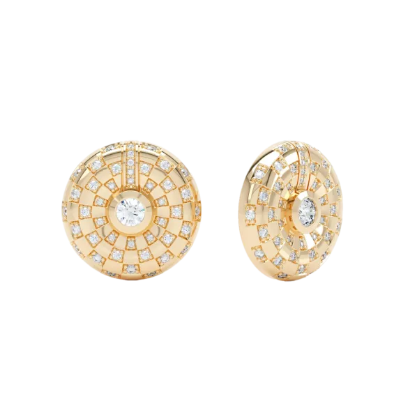 Les boutons Toi et Moi sont fabriqués à la main en or recyclé 18 carats et sertis d'environ 1,2 carat de diamants Brillant cultivés en laboratoire, créant un motif moderne en damier pour un look absolument glamour.