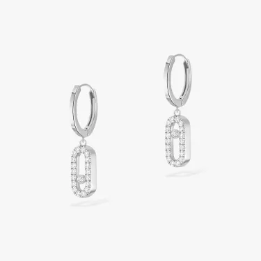 A la recherche d'une paire de boucles d'oreilles luxe et féminine, à porter au quotidien ? Découvrez les nouvelles boucles d'oreilles créoles diamant Move Uno. Ces pendants d'oreilles réalisées à la main en or blanc 18 carats sont pavées de diamants et dotées du motif emblématique de Messika : un diamant pris entre deux rails, qui bouge au gré de vos mouvements. Résultat : des créoles au design délicat, extrêmement confortables . A porter en paire, à accumuler sur le même lobe ou même seule en mono. Autant de possibilités pour varier les styles.
