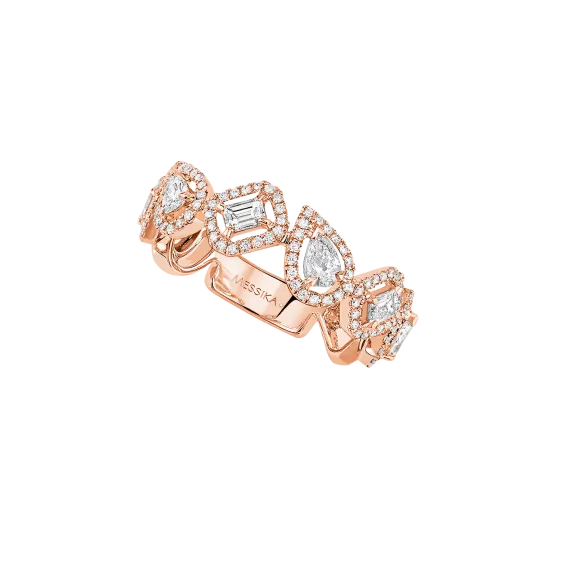 Cette alliance My Twin en or rose 18 carats réalisée à la main est parfaite pour les femmes à la recherche d'une alliance diamant originale un brin rétro. Dans un joli jeu de tête à tête, quatre diamants taille émeraude et quatre diamants taille poire de 0,10ct chacun s’alternent comme autant de témoignages des moments inoubliables et uniques d’une vie. Son or rose chatoyant, alliage développé spécifiquement par la maison Messika, apportera douceur et lumière à la main. Détail chic : à l’arrière de la bague, une petite plaque pavée avec diamants micro-sertis signe cette création Messika.