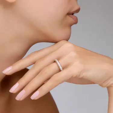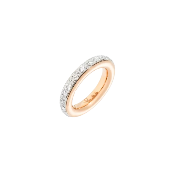 Célébrant l'héritage de Pomellato dans le domaine de la haute joaillerie, la collection ICONICA resplendit avec de somptueuses bagues en or rose sensuel et diamants blancs. Audacieuse, légère et superposable, cette collection anniversaire permet les multiples combinaisons chères à l'esprit Pomellato.