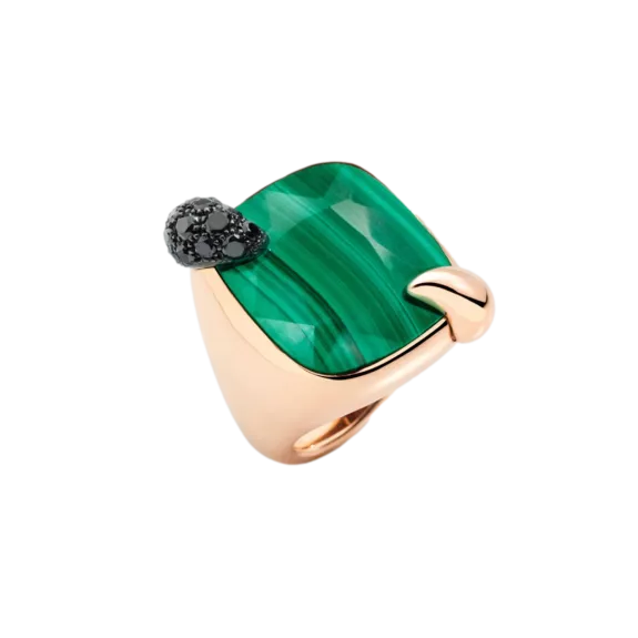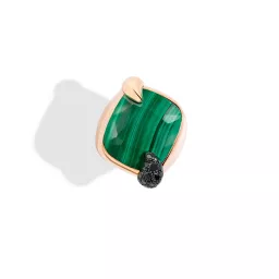Bague en or rose 18 carats avec 19 diamants (≈0,6 ct) et 1 malachite.
