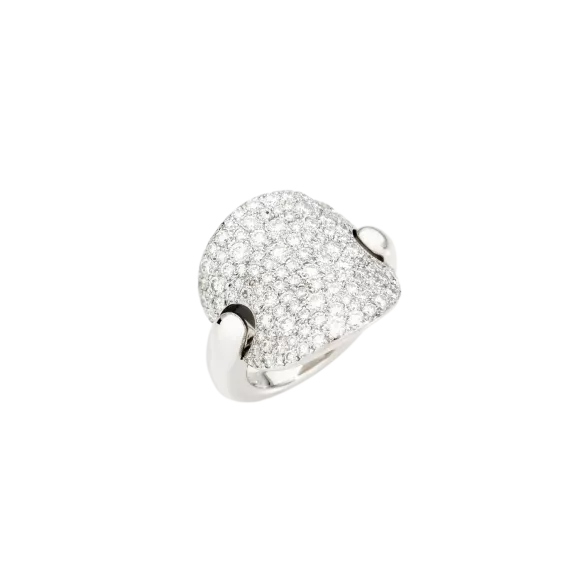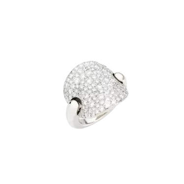 La bague Sabbia incurvée est maintenant disponible en or blanc, ajoutant une tonalité dorée raffinée et fraîche à cette collection populaire. La bague est ornée d'un pavage de diamants tactile dans un motif naturel, conférant à Sabbia son chic organique et décontracté.
