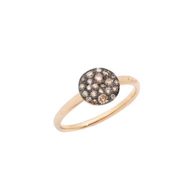 Bague En Or Rose 18 K Avec 22 Diamants Cognac (≈0.3 Ct) Sur De L’or Rose 18 K Rhodié Noir.