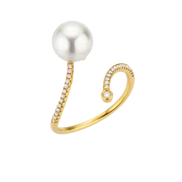 Bague avec diamants, or 750, 29x 0,10 ct G vs, saphir, Akoya 4/4 blanc 8,5-9 mm.