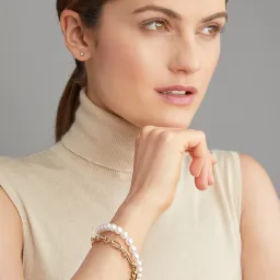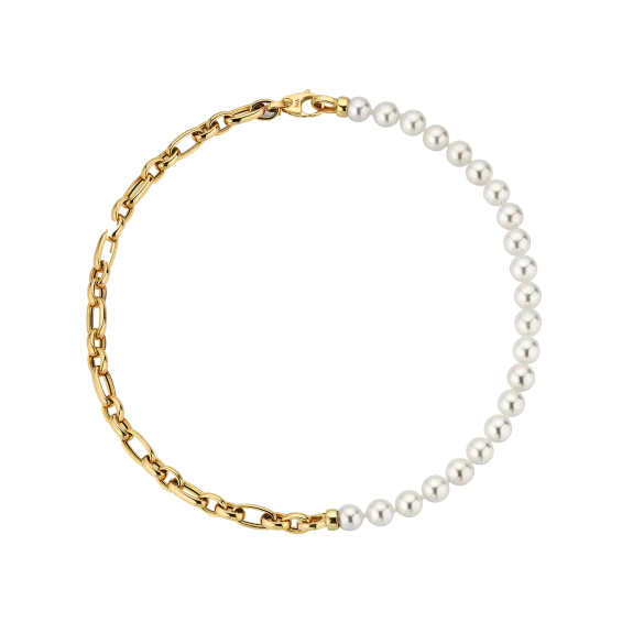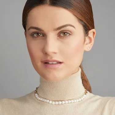 Probablement le collier de perles le plus intéressant en termes d'efficacité. Ce bijou peut être porté comme collier ou comme deux bracelets, et ce très facilement grâce à ses fermoirs mousquetons. De conception astucieuse et d'une qualité incomparable en termes d'or jaune et de perles Akoya, il complète à merveille toute collection de bijoux.