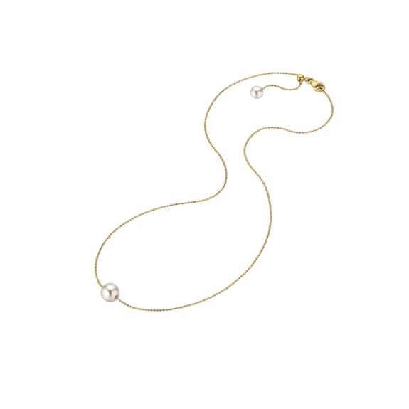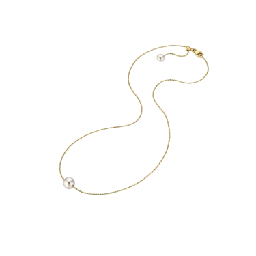 La perle Akoya unique et scintillante orne délicatement le décolleté. La magnifique chaîne en or jaune ajoute une touche d'éclat supplémentaire et offre un confort optimal pour un usage quotidien ou lors d'occasions spéciales.
