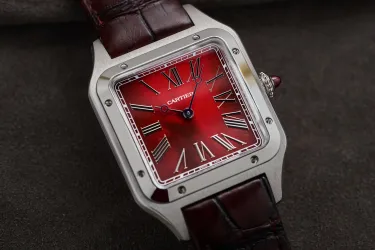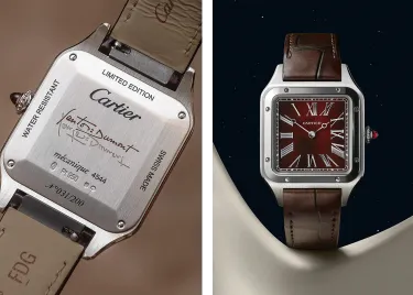 La Cartier Santos-Dumont "Rewind" revisite l'élégance classique des montres d'aviation de début de siècle avec une touche audacieuse et novatrice : un cadran monté à l'envers. Ce modèle capture l'esprit d'Alberto Santos-Dumont, reflétant à la fois audace et raffinement dans sa conception. Cette particularité innovante invite à interagir de manière unique avec la montre, le porteur devant la regarder sous un angle différent pour lire l'heure, ce qui en fait un sujet de conversation autant qu'un instrument de mesure du temps.