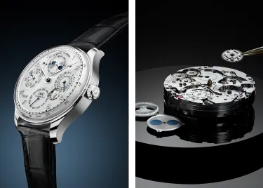 Ce modèle est pratique grâce à sa complexité simplifiée et il est également un plaisir pour les yeux. L’affichage double des phases de la lune, qui ne nécessite une correction qu’après 577,5 années, est un hommage à l’exactitude et à l’innovation horlogère. Le fond du boîtier, transparent, offre une vue spectaculaire sur le mécanisme interne, dévoilant des rouages précisément assemblés et des finitions méticuleuses qui reflètent l’excellence artisanale d’IWC.