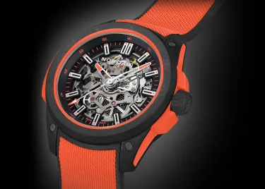 La Norqain Wild One Skeleton séduit avec son audacieux cadran skeleton orange qui met en avant la mécanique avancée à l'intérieur. Ce modèle frappant visuellement est construit pour endurer, abrité dans un boîtier robuste NORTEQ. Ce lancement coïncide avec l'annonce de Stan Wawrinka, le célèbre tennisman suisse, comme nouvel ambassadeur de la marque, ajoutant un visage familier à cette pièce d'exception.