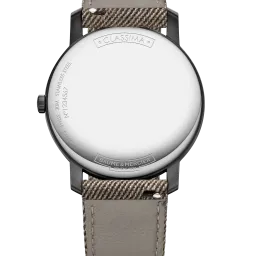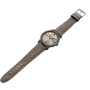 Adoptez l’esprit urbain avec ce garde-temps logé dans une boîte en acier ADLC microbillé, dont la forme ronde dégage charme brut et durabilité. Le cadran sable satiné soleil avec décor lignes et rehaut gris ardoise concentre la beauté essentielle de la nature, tandis que les chiffres romains noirs et les aiguilles feuilles noires vous accompagnent à chaque instant. Déclinable à souhait, le garde-temps est monté sur un bracelet en tissu sable de Holland & Sherry interchangeable, pour une touche de sophistication à chaque aventure. Lors de vos escapades urbaines ou de voyages en pleine nature, cette montre sera bien plus qu’un garde-temps ; ce sera votre fidèle partenaire, prêt à vous accompagner à chaque expédition avec style et fiabilité.