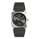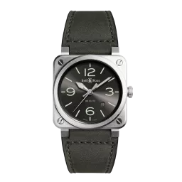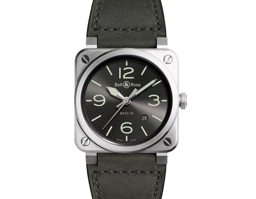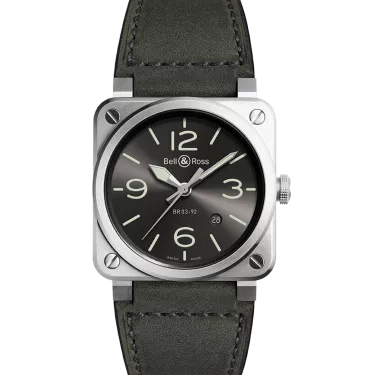 Dernière née de la collection LUM, la BR 03-92 GREY LUM présente des qualités de lisibilité optimale grâce à son traitement Superluminova® C3 destiné à faciliter la lecture de jour comme de nuit. Sur son cadran gris anthracite soleillé au design sans concession, la couleur des aiguilles (heures, minutes) ainsi que des index et des chiffres géants (3, 6, 9, 12) en décalque rappelle l’éclairage des pistes d’atterrissage : une lumière verte intense à la brillance inégalable et connue pour son ultra-phosphorescence. Calibre BR-CAL.302, mouvement mécanique à remontage automatique, largeur 42 mm, boîtier en acier satiné, cadran gris anthracite soleillé, chiffres et index revêtus de Super-LumiNova® vert, aiguilles squelettées métalliques remplies de Super-LumiNova®, verre saphir avec traitement antireflet, étanchéité à 100 mètres, bracelet en veau gris-vert et tissu synthétique noir ultra-résistant, boucle à ardillon en acier satiné avec fonctions heures, minutes, secondes et date.