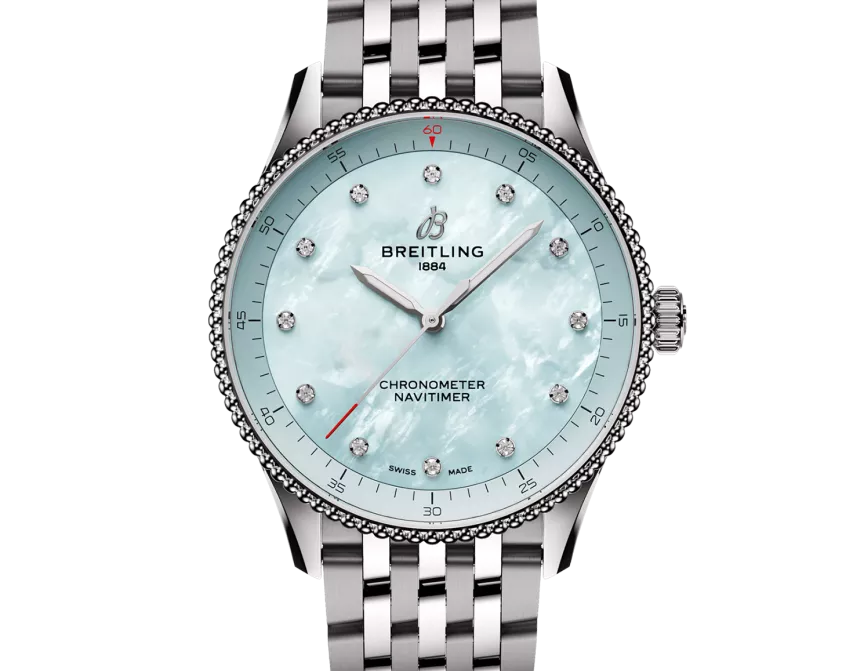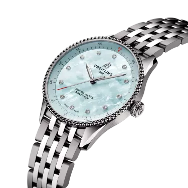 L’icône de Breitling – place au voyage. La Navitimer est l’une des montres les plus reconnaissables jamais fabriquées. Elle est considérée comme l’une des plus grandes montres de tous les temps par les collectionneurs. D’abord instrument de pilotes en 1952, elle prend désormais un sens profond pour chacune des personnes en possession de ce garde-temps au cours de leur parcours personnel. Notre modèle emblématique se décline désormais dans les tailles 36 et 32 mm pour les femmes et les hommes qui aiment l’aspect et la sensation d’une montre de plus petit diamètre. Alors que la Navitimer de 36 mm se caractérise par une lunette perlée et l’emblématique règle à calcul circulaire qui confèrent à la Navitimer son apparence inimitable, l’éblouissante variante de 32 mm renonce à la règle à calcul en faveur d’un cadran au design simplifié adapté à son diamètre étroit. Mais ces petites merveilles ont bien plus à offrir que leurs nouvelles dimensions. Des touches de pastel, de nacre et de matériaux précieux traçables s’associent à des retouches subtiles pour faire de ces garde-temps des bijoux à part entière – ajoutant élégance et polyvalence à la légendaire montre de navigation qui est prête à vous accompagner partout où votre voyage vous mènera.