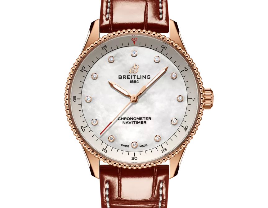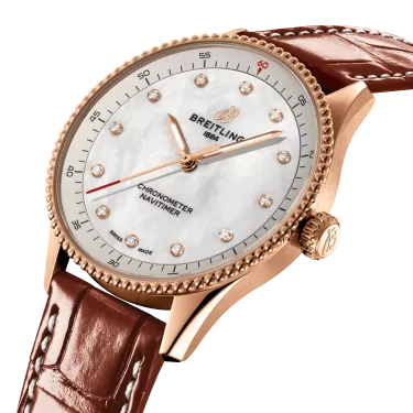 L’icône de Breitling – place au voyage. La Navitimer est l’une des montres les plus reconnaissables jamais fabriquées. Elle est considérée comme l’une des plus grandes montres de tous les temps par les collectionneurs. D’abord instrument de pilotes en 1952, elle prend désormais un sens profond pour chacune des personnes en possession de ce garde-temps au cours de leur parcours personnel. Notre modèle emblématique se décline désormais dans les tailles 36 et 32 mm pour les femmes et les hommes qui aiment l’aspect et la sensation d’une montre de plus petit diamètre. Alors que la Navitimer de 36 mm se caractérise par une lunette perlée et l’emblématique règle à calcul circulaire qui confèrent à la Navitimer son apparence inimitable, l’éblouissante variante de 32 mm renonce à la règle à calcul en faveur d’un cadran au design simplifié adapté à son diamètre étroit. Mais ces petites merveilles ont bien plus à offrir que leurs nouvelles dimensions. Des touches de pastel, de nacre et de matériaux précieux traçables s’associent à des retouches subtiles pour faire de ces garde-temps des bijoux à part entière – ajoutant élégance et polyvalence à la légendaire montre de navigation qui est prête à vous accompagner partout où votre voyage vous mènera.
