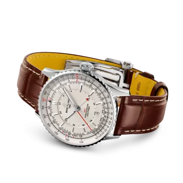 La Navitimer la plus polyvalente de Breitling - pour le voyage. La Navitimer est l'une des montres les plus reconnaissables jamais fabriquées. Elle figure sur les listes des collectionneurs des plus grandes montres de tous les temps. Ce qui a commencé en 1952 comme un outil pour les pilotes a fini par signifier quelque chose de profond pour chaque personne qui a eu ce garde-temps avec elle lors de son voyage personnel. La Navitimer Automatic et la Navitimer Automatic GMT 41 distillent le look emblématique, en omettant le chronographe tout en préservant une composition de cadran équilibrée. L'emplacement central de l'échelle des 24 heures sur la GMT et le cadran épuré de l'Automatic font ressortir la règle à calcul complexe tout en rationalisant l'esthétique générale. Pour affiner encore la collection, la lunette crantée a été incorporée pour apporter une touche contemporaine, et l'alternance des finitions polies et brossées ajoute un jeu de lumière dynamique. Les bracelets en cuir d'alligator et les bracelets avec fermoir papillon sans soudure offrent confort et commodité. La palette comprend des cadrans colorés, habillés au choix d'acier inoxydable ou d'or rouge 18 carats. Cette réinvention de la Navitimer, qui marie le classique et le contemporain, s'adresse aussi bien aux passionnés qu'aux amateurs de style, promettant l'engagement de Breitling en faveur de l'héritage et de l'innovation dans chaque garde-temps.