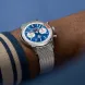 Les années 1960 ont été une décennie d'expérimentation, de plaisir, de liberté et d'énergie. Que ce soit en moto ou en voiture de sport, vivre à toute vitesse était à l'ordre du jour. Willy Breitling a ressenti ce changement de rythme et a entrepris de concevoir un chronographe non conventionnel qui capturerait la verve de l'époque. Il l'a appelé la Top Time. Cette tradition pleine d'entrain se poursuit aujourd'hui, Breitling s'associant à certains des noms les plus cool du monde de l'automobile pour créer ses chronographes Top Time. Au début des années 1960, Carrol Shelby, vainqueur du Mans, a imaginé une voiture qui associait un petit châssis léger de style britannique à un moteur américain puissant et fiable à gros bloc. Lorsqu'elle a été lancée en 1962, la Cobra a connu un succès immédiat, tant auprès des amateurs de voitures de sport que sur les circuits de course. Aujourd'hui encore, elle est toujours aussi rapide et appréciée des collectionneurs. La Top Time B01 Shelby Cobra reprend les couleurs et l'emblème de son homologue classique, ainsi qu'un bracelet de course en cuir perforé, une échelle tachymétrique mesurant la vitesse et des cadrans secondaires contrastés de type « squircle » (ni tout à fait carrés, ni tout à fait ronds) qui donnent l'impression d'être des jauges de tableau de bord d'époque. Elle est également équipée d'un moteur digne d'une fanfaronne sous le capot : l'exceptionnel Calibre Breitling Manufacture 01.