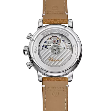 Depuis 35 ans, le cœur de Chopard et celui de la 1000 Miglia battent à l'unisson. En tant que chronométreur officiel de la course de régularité la plus célèbre au monde pour voitures classiques, Chopard a créé la montre Mille Miglia Chronograph. Ils partagent l'amour de la belle ingénierie et de la performance, né de la passion personnelle de Karl-Friedrich Scheufele pour les voitures et la course automobile.