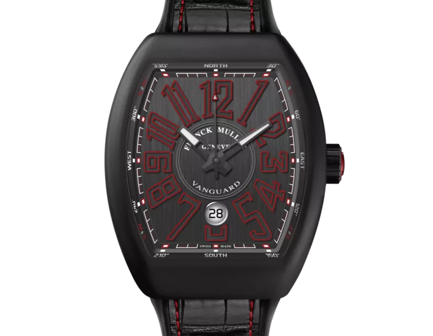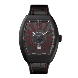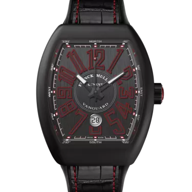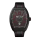Se distinguant par une forme tonneau sportive, la Vanguard™ fait appel à une esthétique épurée et futuriste avec un design unique en son genre. Avec un goût raffiné, les inserts sur les deux côtés du boîtier s'accordent avec goût à la couleur des chiffres et du bracelet pour une élégance et un style extrêmes. Le bracelet est astucieusement intégré à l'intérieur du boîtier afin de maintenir et de prolonger l'aspect incurvé de la montre, le résultat étant un garde-temps étonnant au design unique. Boîtier Vanguard en titane Grade-2 & brossé à la main, revêtement PVD noir, inserts en ergal rouge sur les deux côtés du boîtier, Largeur : 44 mm x Longueur : 53.7 mm x Epaisseur : 12.7 mm, Verre saphir, Etanche à 30 mètres, Cadran brossé, Chiffres en applique minutieusement peints et appliqués à la main, Mouvement MVT FM 800-DT, Mouvement à remontage automatique avec système de rotor bidirectionnel, Réserve de marche de 42 heures, 165 composants, 21 rubis, Diamètre : Ø 25,60 mm. Épaisseur : 3. 75 mm, Fréquence du balancier réglée à 28'800 alternances par heure, Côtes de Genève et brossage soleil papier sur les ponts et le rotor, Grainage circulaire sur les deux faces de la platine principale Chanfreinage des ponts, Bain d'or 24k et rhodiage des composants, Finition or 24k sur les gravures écrites, Brossage circulaire du roulement à billes du rotor, Brossage soleil papier sur le barillet, Polissage à 45° et brossage soleil du cliquet, Vis polies et bleuies, Bracelet alligator cousu main avec revêtement PVD noir et boucle déployante brossée et avec fonctions heures, minutes, secondes, date à 6 heures.