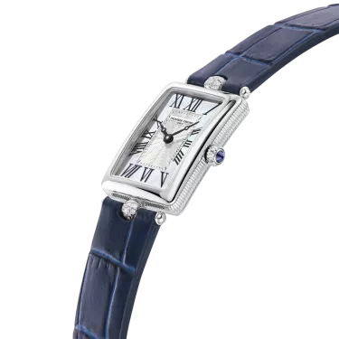 La quintessence du temps raffiné. La Classics Art Déco Carrée, avec son élégant boîtier rectangulaire de forme polie et ses bracelets cannelés, offre l'élégance ultime en apportant une sophistication intemporelle à la collection de Frederique Constant. Inspiré par les femmes sophistiquées et à la mode de la fin des années 1920, ce design se démarque du courant dominant et présente un style différent et vintage.