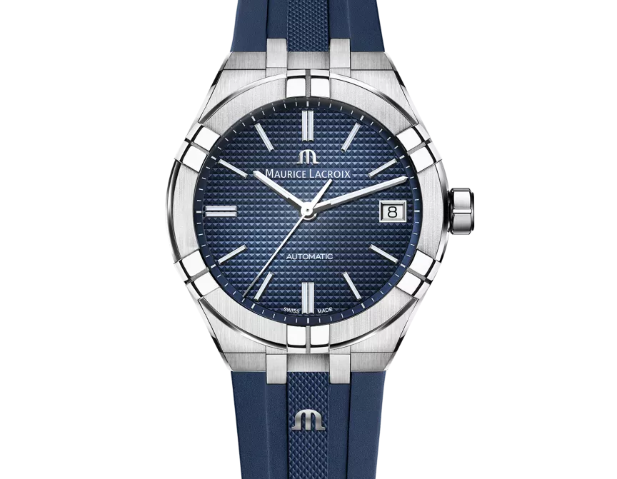 Tous les détenteurs de montres AIKON se félicitent depuis des années du système de changement facile du bracelet. Celui-ci permet de remplacer facilement le bracelet en métal par un bracelet en cuir, ou inversement, sans devoir utiliser le moindre outil. Maurice Lacroix surfe sur cette polyvalence en introduisant une nouvelle gamme de bracelets constitués de caoutchouc FKM. Ce type de caoutchouc offre une souplesse accrue, pour le plus grand confort de l’utilisateur. Il garantit également une grande résistance à l’usure, et sa couleur est moins sujette à la décoloration. Les nouveaux bracelets en caoutchouc disposent d’une rangée centrale ornée du motif Clous de Paris, en écho à celui du cadran. Le long de cette rangée centrale courent deux chaînages en creux alignés avec les anses du boîtier. Plusieurs coloris de bracelets sont proposés, offrant une multitude de combinaisons possibles avec les couleurs de cadran. Tous les bracelets bénéficient d’une boucle ardillon en acier avec le logo M de Maurice Lacroix. Étanche à 20 ATM.