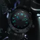 Ce modèle de 43,5 mm possède un boîtier en céramique noire et comprend un cadran noir avec un verre saphir bombé inrayable avec traitement antireflet sur les deux faces. Bracelet en caoutchouc noir avec boucle ardillon en céramique.