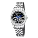Perrelet enrichit sa ligne féminine Diamond Flower d'un nouveau modèle baptisé Diamond Flower Amytis : une collection conçue "par des femmes pour des femmes" et qui allie une technique unique à un brillant savoir-faire. Ce nom évoquant l'histoire ancienne est inspiré de l'histoire des jardins suspendus de Babylone. Les précieuses montres sont équipées du calibre Double Rotor P-181-H, breveté par Perrelet et entièrement produit au sein de sa Manufacture. Dans cette collection, le rotor côté cadran représente des pétales de fleurs qui se balancent au rythme des mouvements du poignet. Chaque femme s'implique activement dans la dynamique poétique de sa montre à travers ses gestes physiques. Les cadrans en nacre, diamant, noir, blanc ou anthracite offrent une délicieuse palette de couleurs et de contrastes qui accompagneront avec élégance chaque femme dans sa vie quotidienne. Les chiffres romains convergeant vers le centre ajoutent une dernière touche de caractère et d'originalité à cette collection. Fonctions: aiguilles centrales indiquant les heures, les minutes et les secondes; 5 ATM; cadran noir brillant - double rotor en forme de pétale de diamants, 19 diamants (0,04ct), cadran Top Wesselton VS1 et boucle déployante. Mouvement manufacture automatique Calibre P-181-H, réserve de marche de 42 heures.
