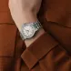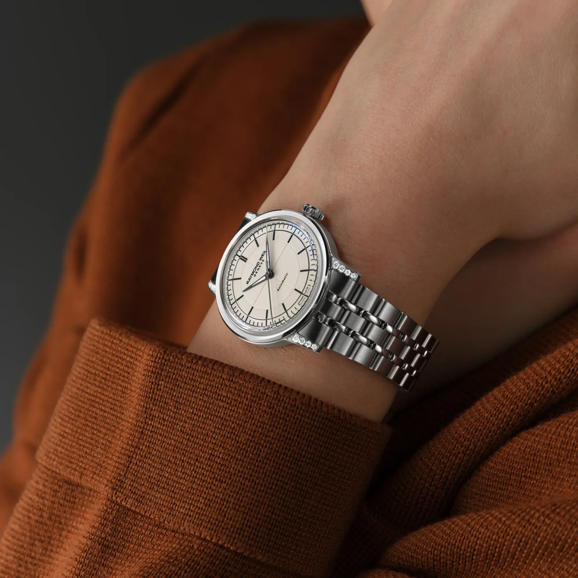 Le cadran crème, situé sous un verre saphir de style vintage, a été raffiné au plus haut point. Les heures et les minutes sont indiquées avec élégance par des aiguilles argentées, recouvertes de Super-LumiNova®. Le cadran sectoriel affiche les heures, les minutes et les secondes sur des pistes distinctes, ce qui améliore la lisibilité.