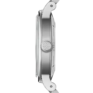 En y regardant de plus près, on remarque des finitions contrastées : la piste des heures est lisse, celle des minutes est hélicoïdale et la partie centrale du cadran est ornée d'un délicat brossage vertical. La lunette est décorée d'un brossage satiné vertical qui contraste merveilleusement avec le biseau hautement poli qui l'entoure. Cette juxtaposition de deux finitions renforce le niveau global de finition.