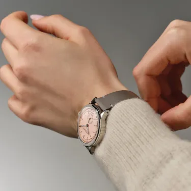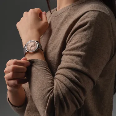 Le cadran saumon, à la fois contemporain et intemporel, vient compléter la collection Millésime, dans la lignée du modèle inaugural qui a remporté le très convoité Prix Challenge lors du dernier Grand Prix d'Horlogerie de Genève. Désormais disponible dans un nouveau diamètre de 35 mm, ce garde-temps raffiné continue d'incarner l'équilibre parfait entre héritage et élégance moderne. Le cadran, situé sous un verre saphir de style vintage, a été raffiné au plus haut point. Les heures et les minutes sont indiquées avec élégance par des aiguilles argentées, recouvertes de Super-LumiNova®. Le cadran sectoriel présente les heures, les minutes et les secondes sur des pistes distinctes, ce qui améliore la lisibilité.