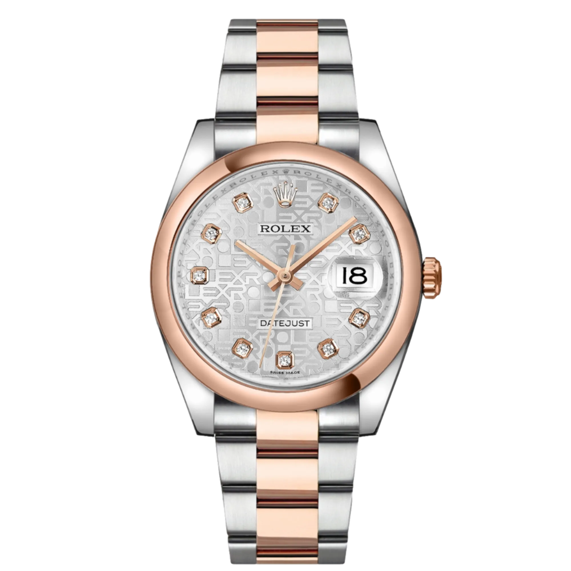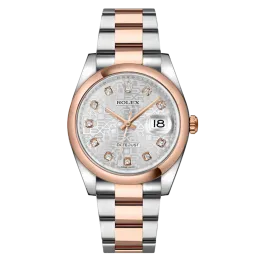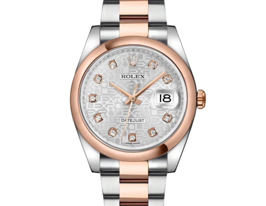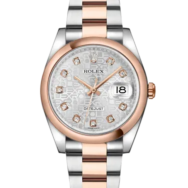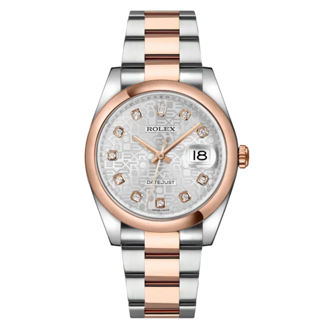Rolex Datejust 116201 36 mm, boîtier en acier inoxydable/or et bracelet Oyster, lunette en or rose, boucle déployante, cadran argenté jubilé diamanté, mouvement automatique, étanchéité 10 ATM, avec boîte d'origine, papiers d'origine et en parfait état de fonctionnement. Cette montre a été contrôlée, certifiée et a subi un test d'étanchéité. Elle bénéficie d'une garantie de 2 ans à compter de la date d'achat.