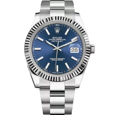 Rolex Datejust 41 126334 Mouvement : Automatique Taille du boîtier : 41 mm Matériau du boîtier : Acier et or blanc Matériau du bracelet : Acier (Oyster) Type de cadran : Bleu Baton Étanchéité : 100 mètres