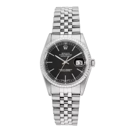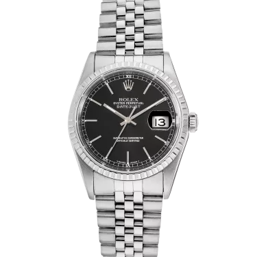 Rolex Datejust 16220 36 mm, boîtier, lunette et bracelet Jubilé en acier inoxydable, boucle déployante, cadran noir, mouvement automatique, mouvement/calibre 3135, étanchéité 10 ATM, avec boîte d'origine, papiers d'origine et en parfait état de fonctionnement. Cette montre a été vérifiée, certifiée et a subi un test d'étanchéité. Elle bénéficie d'une garantie de 2 ans à compter de la date d'achat.