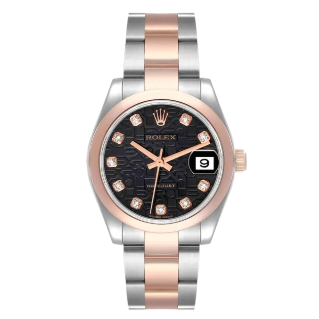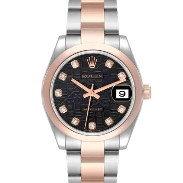 Rolex Datejust Lady 31 178241 Movement : Automatic Case size : 31mm Case material : Steel & Rose Gold Bracelet material : Steel & Rose Gold (Oyster) Dial type : Black Diamond Jubilee Water resistance : 100 Metres
