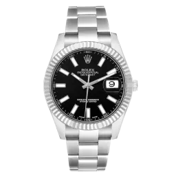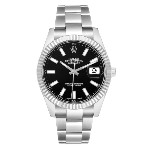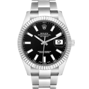 Rolex Datejust II 116334 Mouvement : automatique Diamètre du boîtier : 41 mm Matériau du boîtier : acier et or blanc Matériau du bracelet : acier (Oyster) Type de cadran : noir à index bâtons Étanchéité : 100 mètres