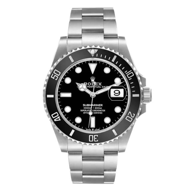 L'Oyster Perpetual Submariner Date en acier Oystersteel est dotée d'une lunette tournante Cerachrom en céramique noire et d'un cadran noir avec de grands index luminescents. Elle est équipée d'une lunette tournante unidirectionnelle et d'un bracelet Oyster à maillons larges. La dernière génération de Submariner et Submariner Date reste fidèle au modèle original lancé en 1953. La Submariner marque un tournant historique dans l'univers de l'horlogerie et devient rapidement l'une des montres préférées des plongeurs.