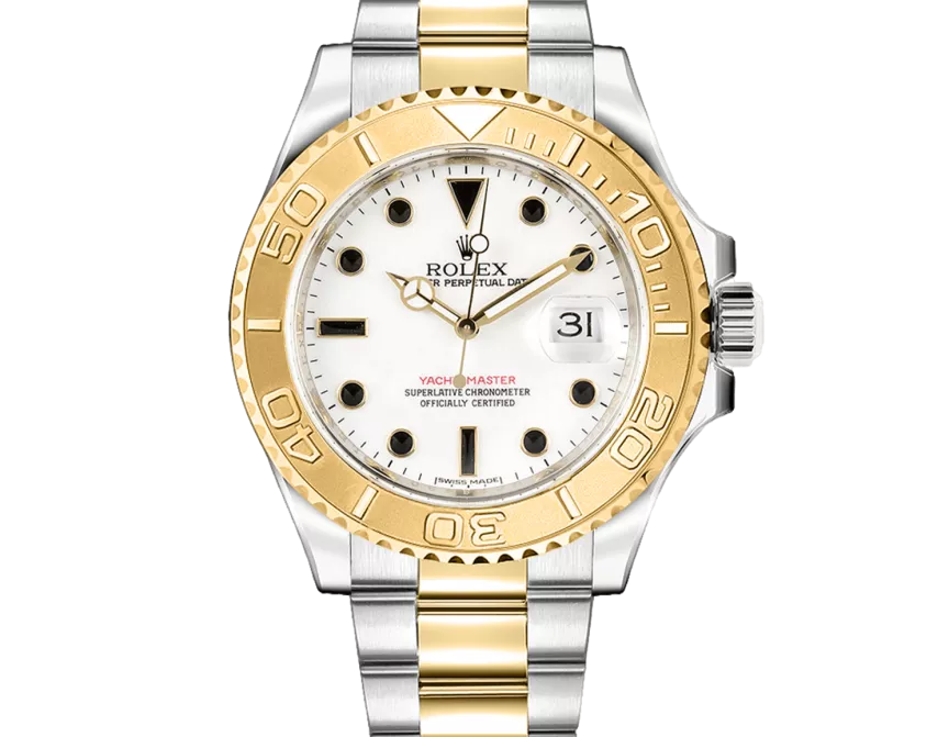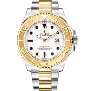 Rolex Yacht-Master 16623 Mouvement : Automatique Taille du boîtier : 40 mm Matériau du boîtier : Acier et or jaune Matériau du bracelet : Acier et or jaune (Oyster) Type de cadran : Blanc Étanchéité : 100 mètres