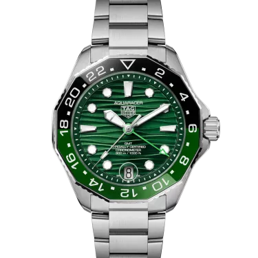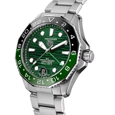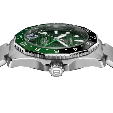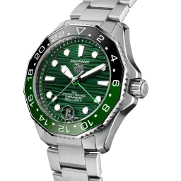 Explorez les eaux du monde entier avec cette TAG Heuer Aquaracer Professional 300 ultra-fiable. Animée par le Calibre TH31-03 certifié COSC, cette montre polyvalente de 42 mm intègre un boîtier en acier poli et satiné avec une lunette en céramique verte et blanche et un chronomètre GMT, ce qui en fait un outil indispensable pour les aventuriers du monde entier.