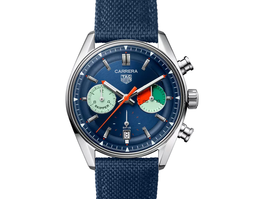 Cette édition TAG Heuer Carrera Skipper incarne l'esprit de la voile et sa passion irrépressible pour la précision et la vitesse. Arborant une combinaison unique de bleu, d'orange, de vert et de sarcelle, cette montre audacieuse et intrépide est étanche à 100 mètres. Prête à parcourir les mers et les océans.