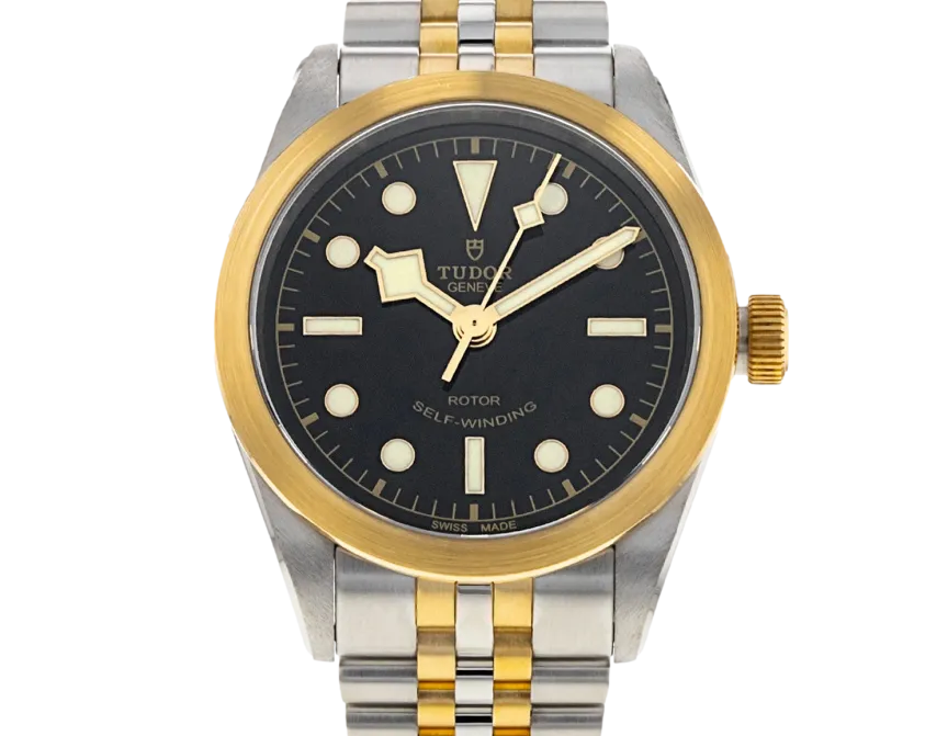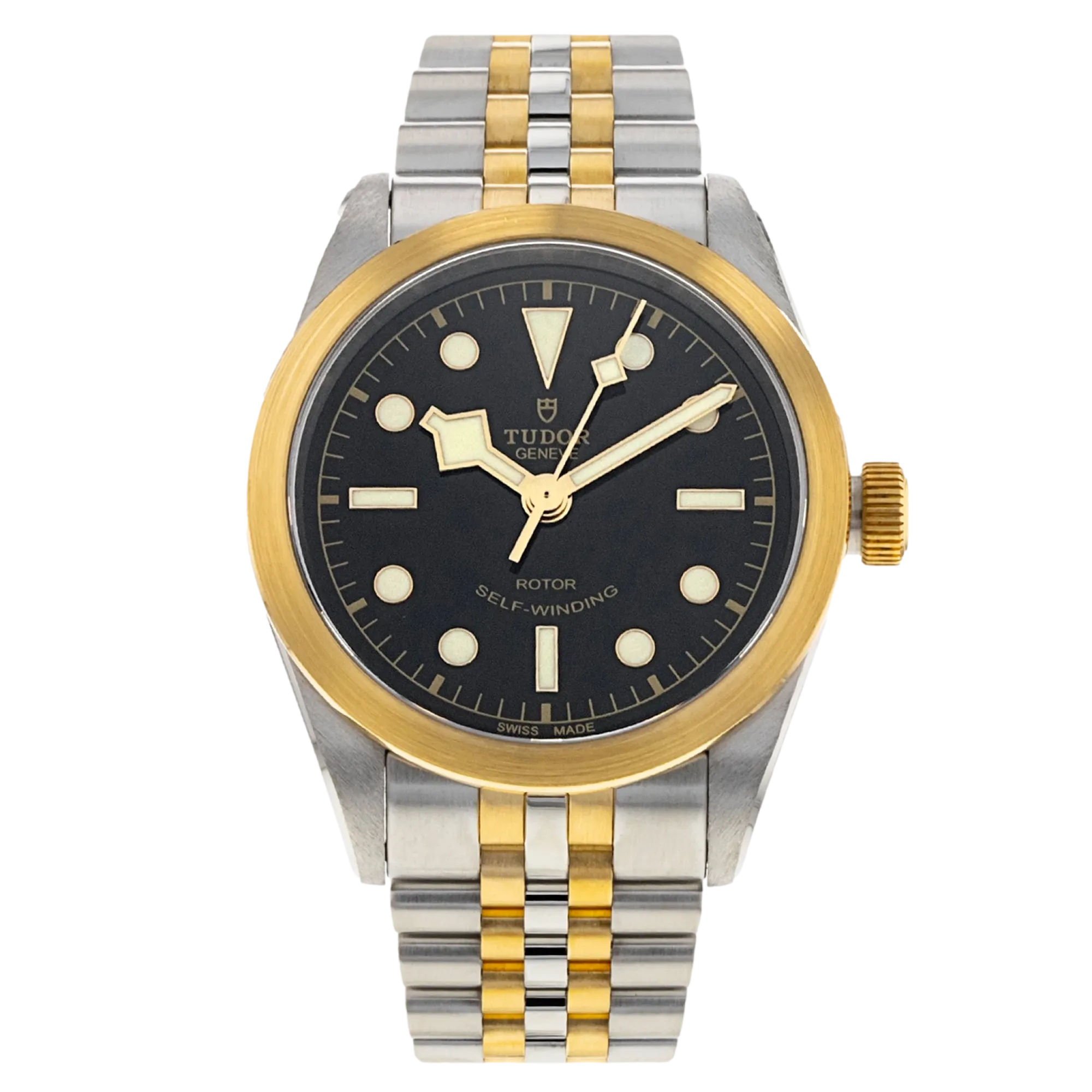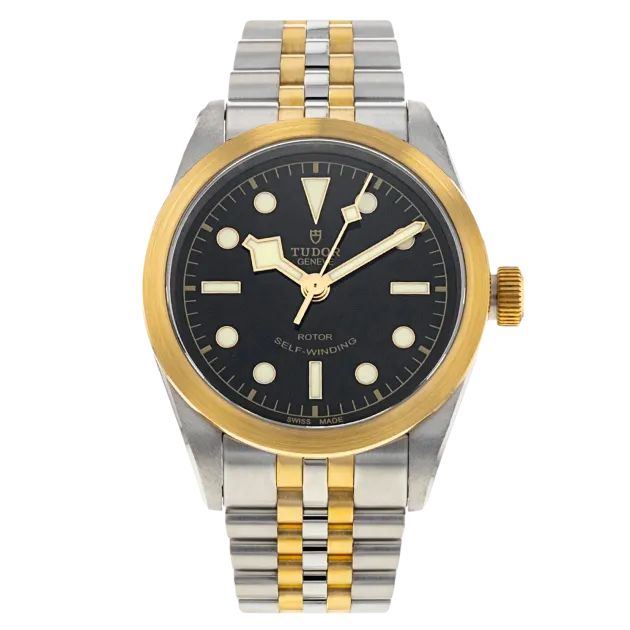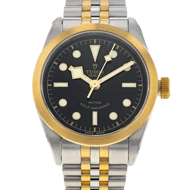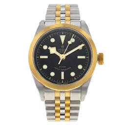 Tudor Black Bay M79503-0001 Mouvement : automatique Diamètre du boîtier : 36 mm Matériau du boîtier : acier et or jaune Matériau du bracelet : acier et or jaune Type de cadran : noir à index bâtons Étanchéité : 150 mètres