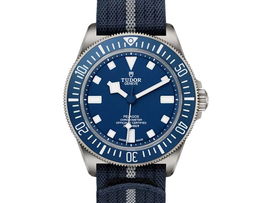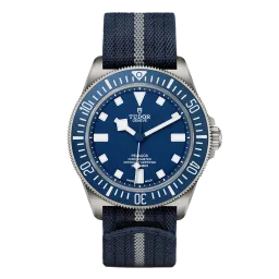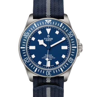 Tudor Pelagos M25707B/21-0001 Mouvement : Automatique Taille du boîtier : 42 mm Matériau du boîtier : Titane Matériau du bracelet : Tissu - Bleu Type de cadran : Bleu Étanchéité : 200 mètres
