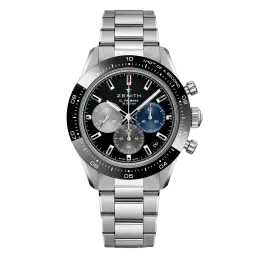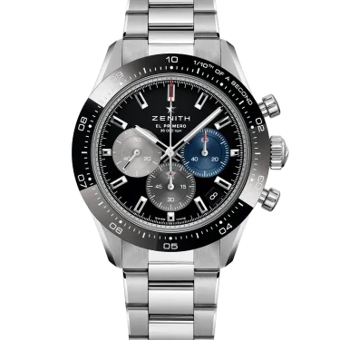 La CHRONOMASTER Sport allie des éléments issus d’anciennes références de chronographes ZENITH, comme le cadran tricolore, les poussoirs en forme de pompe et le bracelet en acier associé à une lunette en céramique noire, le tout dans un boîtier moderne de 41 mm. Ce modèle présente un cadran noir doté d’un bracelet en acier intégré. La montre est animée par le mouvement de chronographe automatique El Primero 3600 affichant les 1/10e de seconde.
