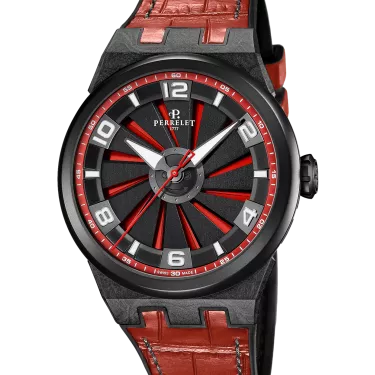 La Turbine Carbon Red est une célébration de l'audace et de la technologie avancée. Ce modèle se distingue par sa turbine en aluminium anodisé noir dépassant d'un cadran rouge saisissant, conçu pour capturer et refléter chaque mouvement avec élégance. Cette montre n'est pas seulement un instrument de précision avec son mouvement automatique P-331-MH, mais aussi une œuvre d'art horlogère, avec un boîtier en polycarbonate et fibre de carbone qui garantit légèreté et solidité. Le bracelet en veau doublé de caoutchouc s'harmonise parfaitement avec l'intensité du rouge de son cadran, faisant de cette montre un choix idéal pour ceux qui cherchent à se distinguer dans n'importe quel contexte.